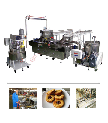 產品特點: 主機采用伺服電機驅動,性能更穩定,定位更精確,運行過程中可動態調整。 光電檢測餅干,無餅的情況下不漏奶油,有餅后自動恢復供料。 可快速拆換的全不銹鋼出料模具,可以處理不同形狀和大小的餅干。 選配轉彎供餅裝置,跨越生產線設計,節省占地空間。 配備廢料收集系統,便于清潔和維護。 每個奶油桶都擁有獨立的電機。 總功率:7kw 工作電壓:220v/50Hz 外形尺寸:7830*7000*1455mm 凈重:1500kg 生產能力:1000pcs/min 適用餅干范圍:Round:Φ45-70mm Square:(L*W):(45-80)*(45-70)mm